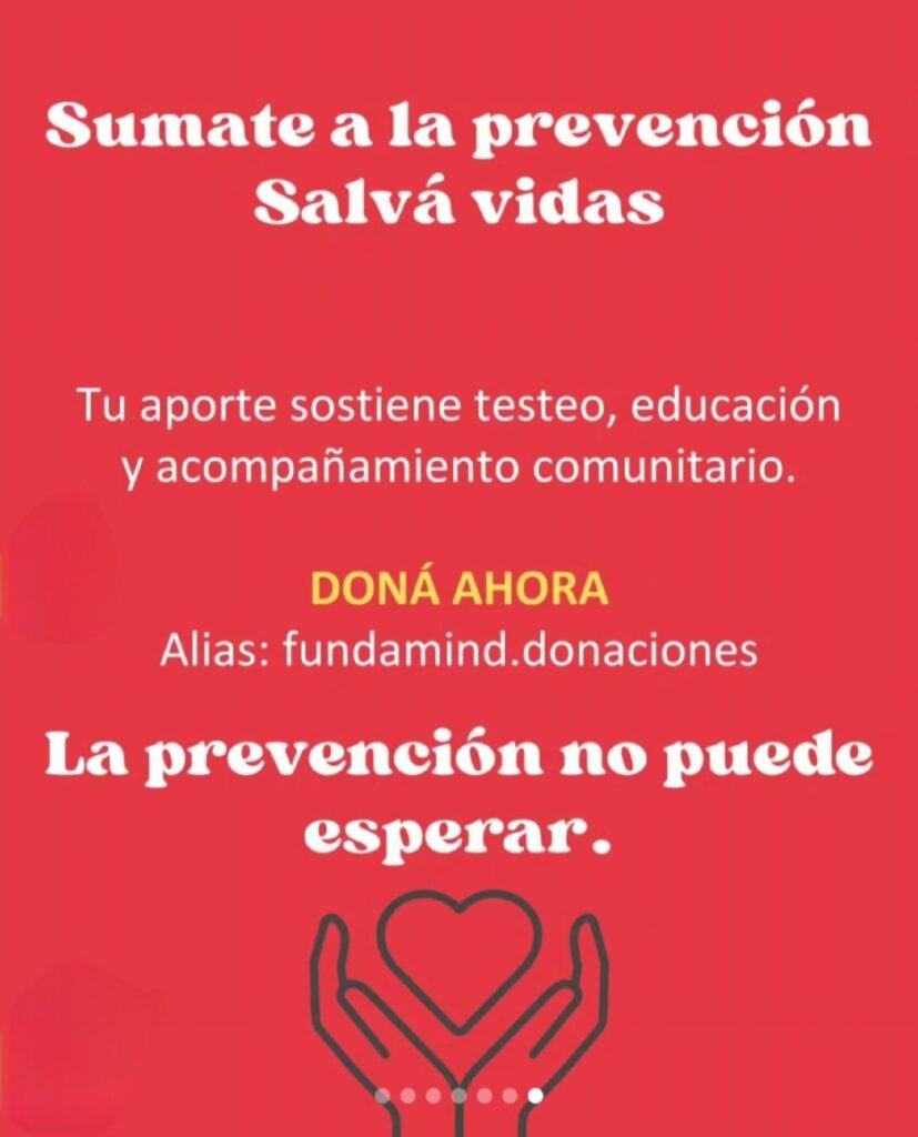 Cada donacion permite que FUNDAMIND siga realizando testeos de vih, concientizando y acompañando a los chicos y familias que mas lo necesitan.