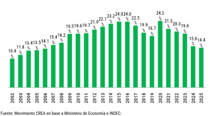 Sin embargo, de cara al 2026 parece difícil seguir reduciendo el gasto público. De hecho, así lo contempla el propio presupuesto que estima un leve aumento de 0,2% del PBI en el gasto primario. Sin aceleración inflacionaria ni una reforma explicita en el sistema de pensiones, no habrán contracciones adicionales en el gasto en jubilaciones (42% del gasto primario).