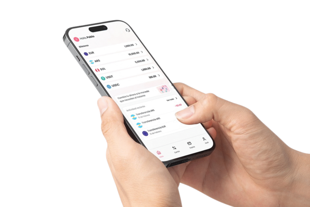La plataforma permite abrir una cuenta digital en minutos, sin necesidad de residencia formal ni historial crediticio local, sólo con un pasaporte y un teléfono móvil. En la app, los usuarios pueden operar con pesos argentinos, soles peruanos, y stablecoins USDC y USDT, con planes para integrar próximamente pesos colombianos y conexión con sistemas de pago locales como PIX en Brasil.