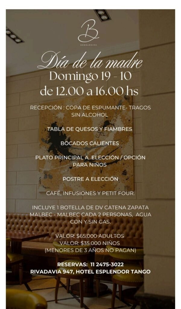 BERNARDINO RESTAURANTE , MENÚ ESPECIAL PARA EL DÍA DE LA MADRE EN UN HOTEL DE LUJO.