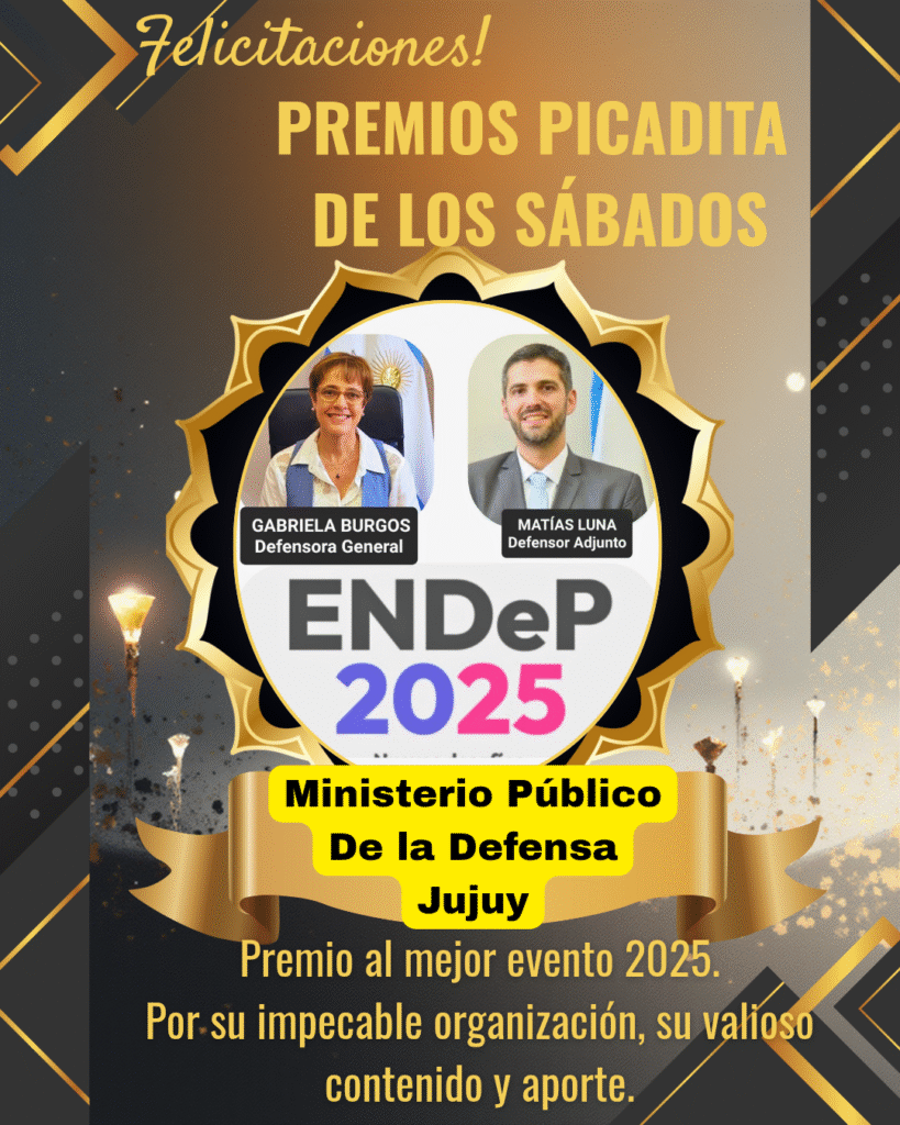👏1. El Ministerio Público de Jujuy , por el mejor evento 2025, ENDeP , en la pcia.de Jujuy. Excelente contenido y aporte y perfecta organización.