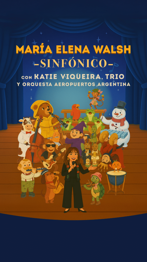 El domingo 5 de octubre a las 17.30 h en el auditorio de la Usina del Arte, el Ministerio de Cultura de la Ciudad de Buenos Aires presentará María Elena Walsh Sinfónico, un espectáculo especial que reimagina el universo poético y musical de una de las autoras más entrañables de la cultura argentina. El espectáculo estará a cargo de Katie Viqueira, su trío conformado por Norbi Córdoba (dirección músical), Federico Mizrahi y Fabián “Sapo” Miodownik, junto a la Orquesta Sinfónica Aeropuertos Argentina, bajo la dirección del maestro Nestor Tedesco. Con inscripción previa y sin costo a partir del 29 de septiembre en usinadelarte.ar.