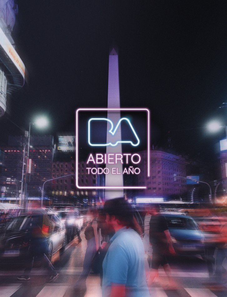 “BA. Abierto todo el año” es un concepto que, a través de múltiples canales de comunicación, busca conectar no solo con turistas, sino que también con el sector privado. Para lograrlo, se desarrollaron distintas piezas como spot audiovisuales para televisión y redes sociales, banners para web, cartelería en la vía pública y cápsulas específicas para los diversos canales digitales, radio y Spotify.