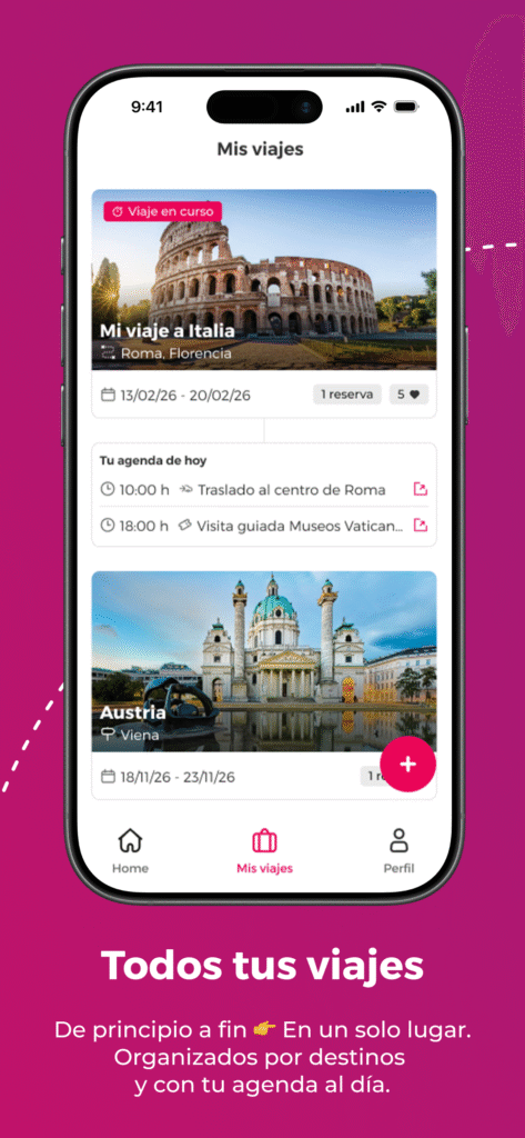 Este enfoque unificado aborda uno de los principales puntos de fricción del viajero actual: la información fragmentada en múltiples plataformas. Todo el viaje vive en un único lugar, de forma estructurada, intuitiva y siempre disponible.
