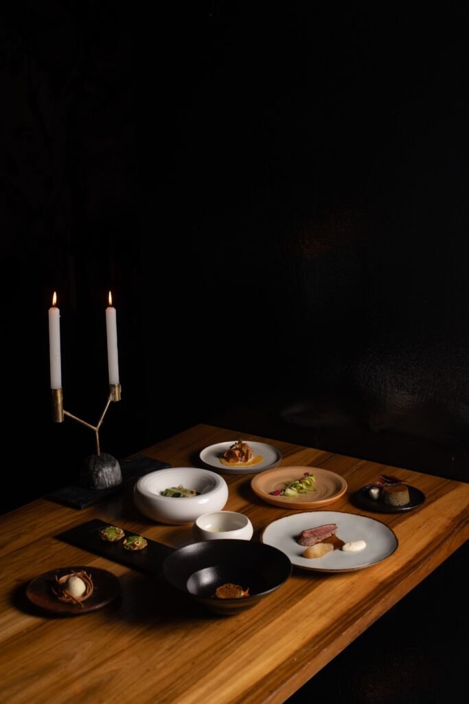 El menú propone una secuencia cuidadosamente diseñada que comienza con focaccia con manteca saborizada y continúa con tiradito de langostinos o vieiras con leche de tigre de maracuyá —u ostras con salsa cítrica, según disponibilidad—, zanahorias baby glaseadas con salsa holandesa cítrica, pesca del día con manteca noisette, y un principal de ojo de bife o bife de chorizo ahumado al kamado.