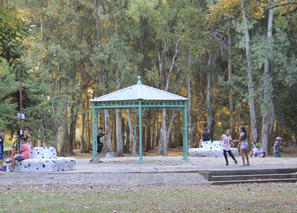 En la plaza, los bancos de cemento aún conservan los nombres de las familias que los donaron, gesto que revela el profundo sentido comunitario que define al pago.