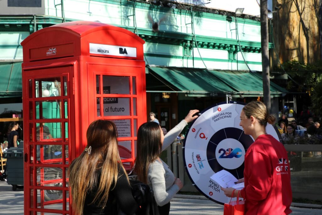Durante la jornada de ayer, vecinos, transeúntes y turistas participaron de una actividad lúdica en la que tuvieron la oportunidad de ganarse merchandising del Bicentenario y otros premios al responder preguntas de cultura general sobre el Reino Unido y sobre la historia de su vínculo con la Argentina.
