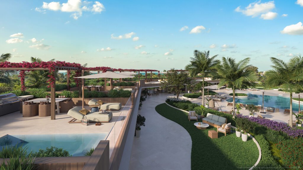 El condominio ofrece una infraestructura de amenities de nivel internacional, entre los que se destacan opciones gastronómicas formales, un club de playa frente al océano, y una marina de aguas profundas diseñada para albergar yates de gran porte. A esto se suma un centro de fitness de última generación, equipado para entrenamientos de alto impacto, con reformadores de Pilates y un estudio de yoga con vistas abiertas a la bahía, pensado para integrar bienestar y paisaje.