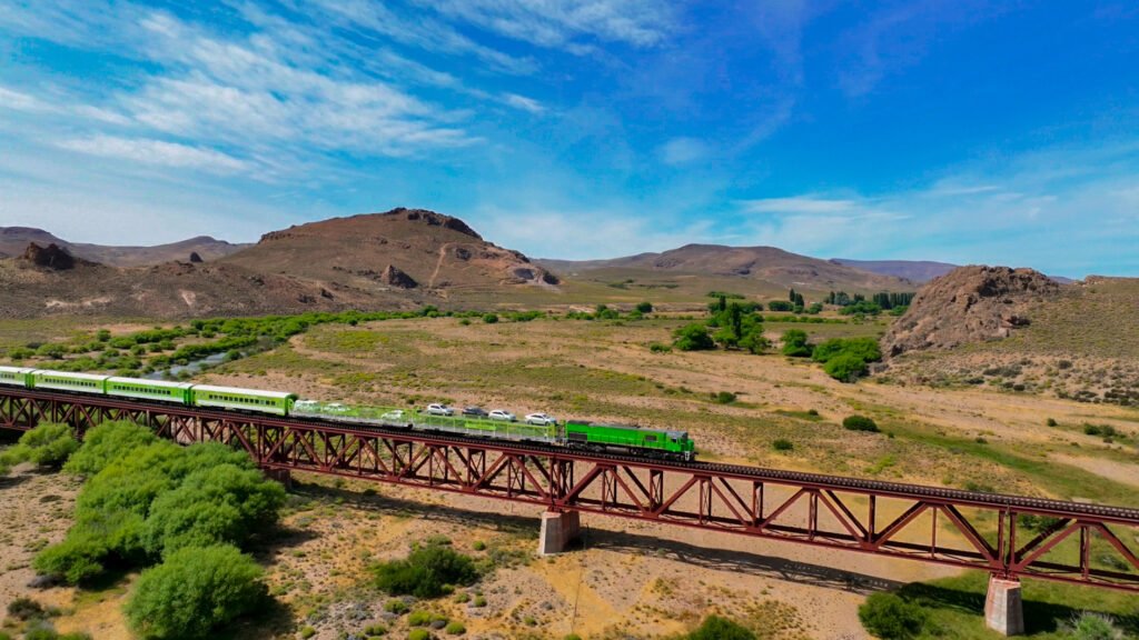 El Tren Patagónico, uno de los mayores emblemas rionegrinos, une semanalmente Viedmacon San Carlos de Bariloche, en un viaje que recorre la provincia de punta a punta y fusionala inmensidad esteparia con la imponente Cordillera de los Andes, convirtiendo estaexperiencia en una vivencia inolvidable.