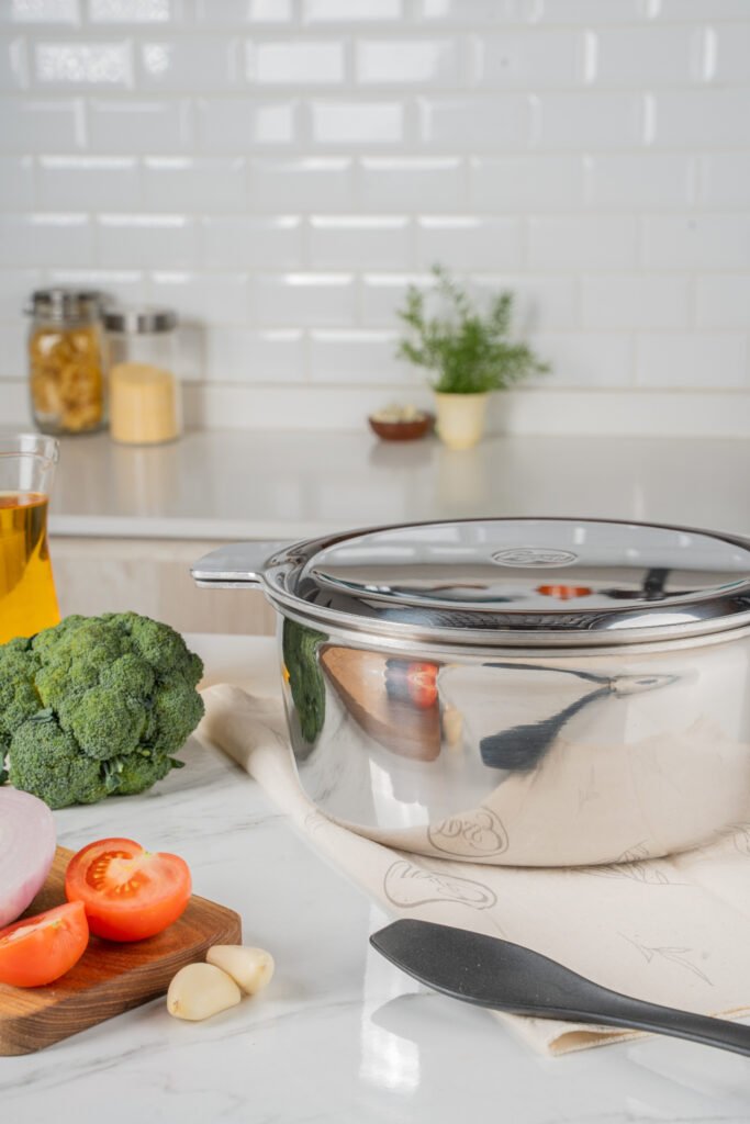 - Cuidar las formas de cocción. El cómo también importa. Es recomendable priorizar cocciones simples para aprovechar mejor las propiedades nutricionales de los alimentos, como plancha, vapor, o salteados rápidos, así como también la elección de los productos que utilizamos para cocinar. Como nutricionista una de las cosas que más destaco cuando acerco los productos a mis compradores, es que Essen permite cocciones más saludables, con más sabores y nutrientes, menor consumo de grasas, ya que el espesor de las cacerolas permite frituras más rápidas y con menos absorción de aceite; y menor consumo de sal, por el diseño de las cacerolas que concentra y resalta el sabor natural de los alimentos, reduciendo la necesidad de agregar sal y condimentos adicionales.