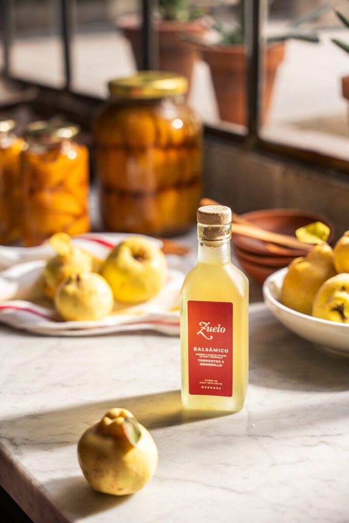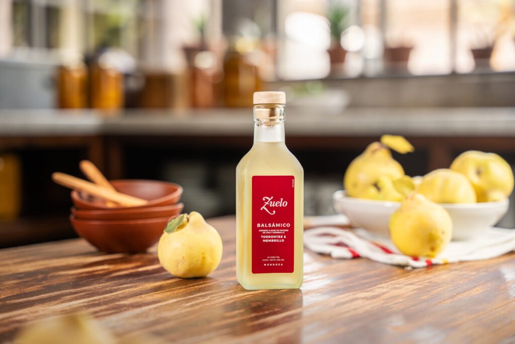 Zuelo, el proyecto mendocino de aceites de oliva virgen extra y vinagres de alta calidad, presenta el nuevo Balsámico de Torrontés & Membrillo. Esta propuesta, que surge de la exploración de una nueva categoría de vinagres, parte de vino blanco de uva torrontés de Mendoza y finaliza con la maceración de la piel de los membrillos en vinagre, que se realiza durante la cosecha de este fruto en el mes de abril. El resultado es un sabor fresco, de acidez vibrante, con un final dulce y frutado. Zuelo Balsámico de Torrontés & Membrillo está a la venta en tiendas gourmet y vinotecas de todo el país.